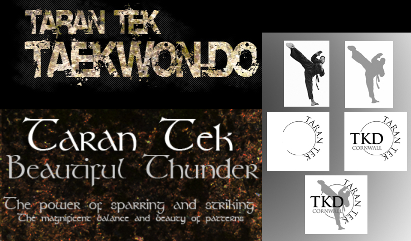 The name "Taran Tek" is from the Cornish language and literally means "Beautiful Thunder" This for us sums up the sport of Taekwon-Do, the beauty of patterns coupled with the power of striking and sparring. We're based in Cornwall so wanted to represent the local language in the name of our club. The logo was designed by Mr Hayers and derives from a picture of Jhoon Rhee performing a side-kick. We decided to arrange the lettering in a circle around the central image to denote the same ideology of the "round table". This represents the equality, unity, and comradeship of the club.